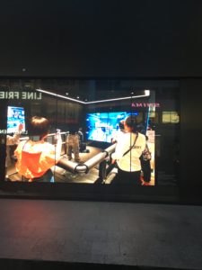 上層階にはVRの体験コーナーもあり、その様子がビル正面に写し出されています。