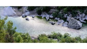川底の石をどかすには水量を下げる